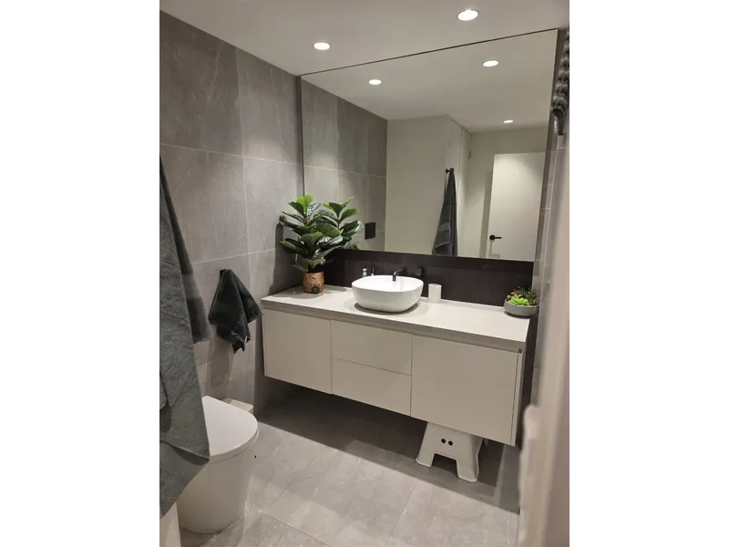 Bathroom has a walk-in rainfall/hand-held shower and a concealed cistern toilet, along with heated floor, and separate internal laundry.