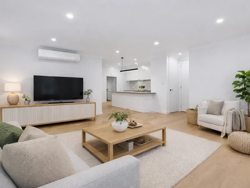 Step inside to discover a light-filled, open-plan living and dining area, featuring updated flooring and a neutral colour palette that creates a welcoming, airy atmosphere. The space flows effortlessly to a practical kitchen, complete with ample bench space, storage, and quality appliances-ideal for everyday living or entertaining friends and family.