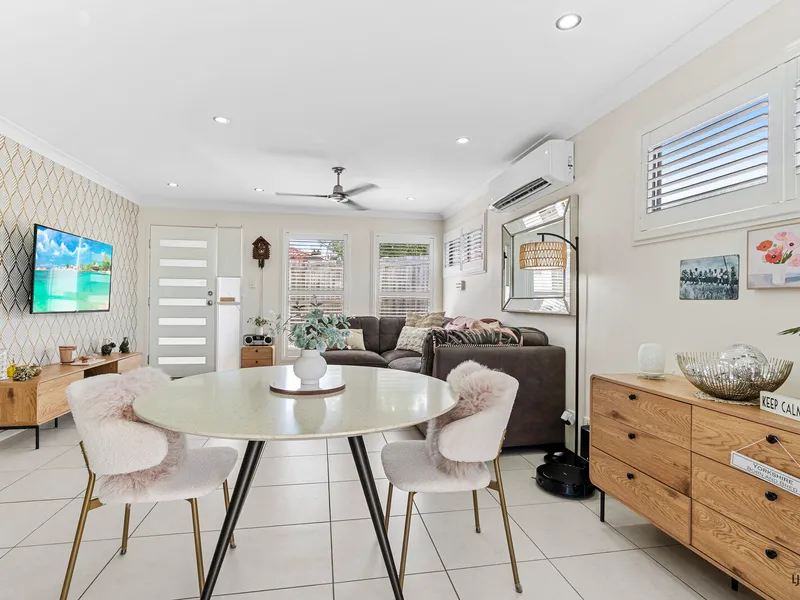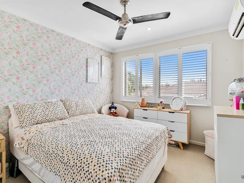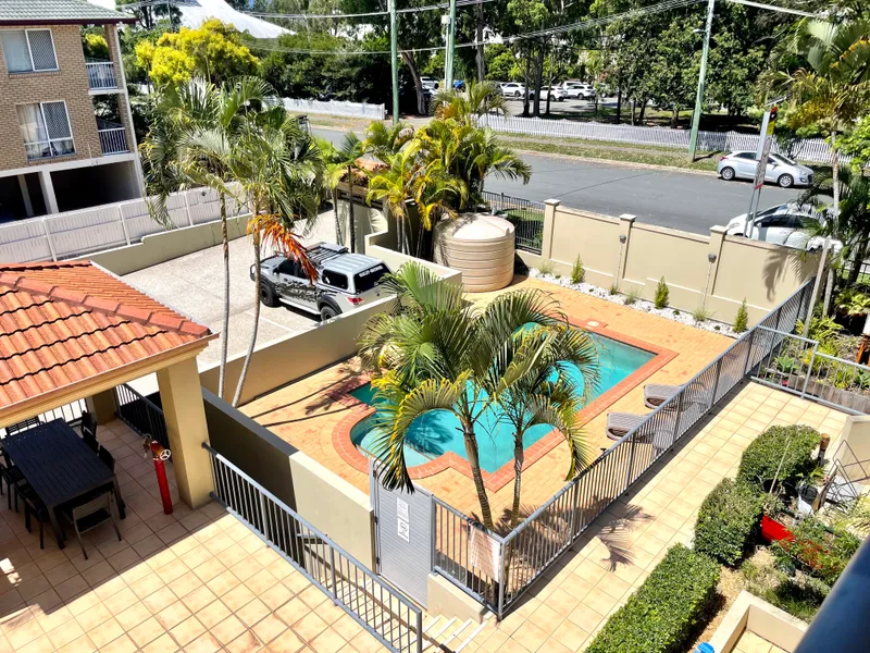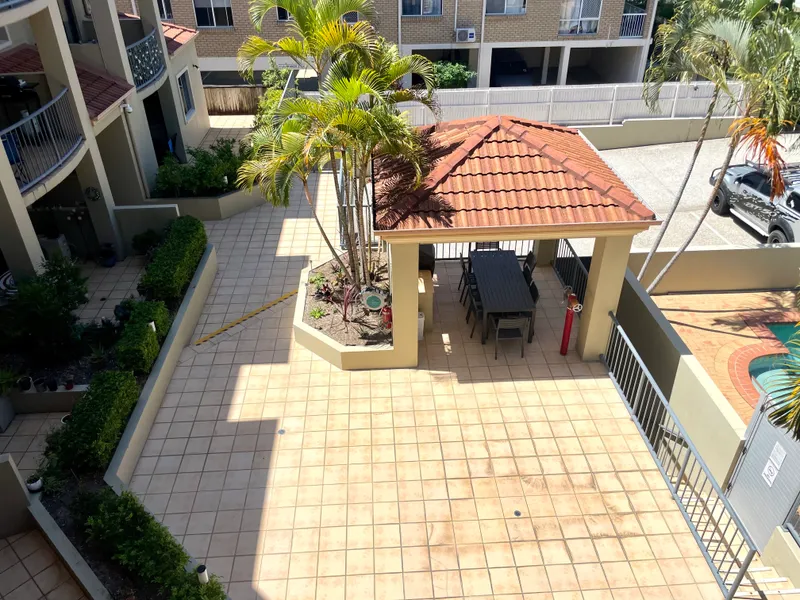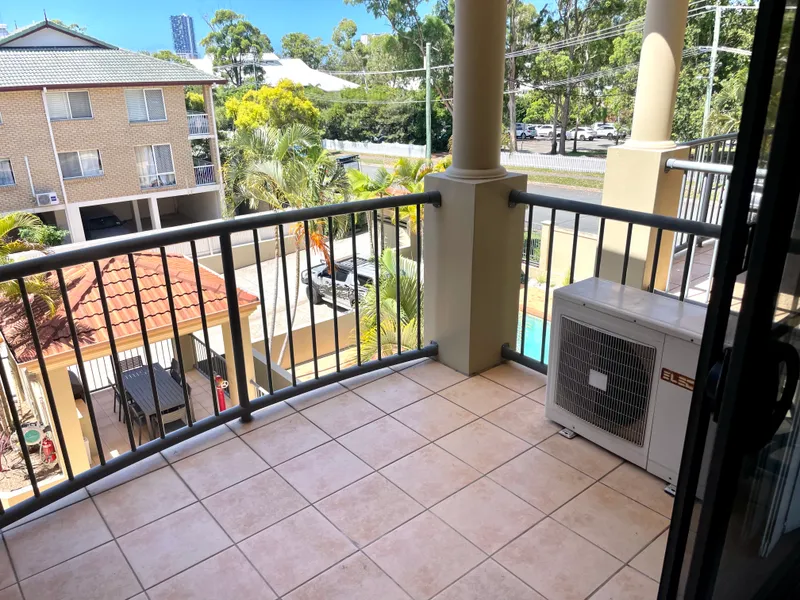 This spacious light filled unit is set in a quiet & secure complex over looking the grounds of St Hilda's School at the front and sporting fields to the rear. Huge open plan air conditioned living. Kitchen includes dishwasher & plenty of storage space and a big balcony off the lounge. Spacious bedroom downstairs with built ins & back balcony and air-conditioned master bedroom including ensuite and walk in robe upstairs. Dryer included, intercom system to unit, secure basement car park and CCTV. With beautiful landscaped gardens and a sparkling resort style in ground swimming pool and alfresco BBQ entertaining area you will never want to leave! Ideally located, walk to Southport CBD and with the light rail station around the corner you can leave your car at home. Water included.