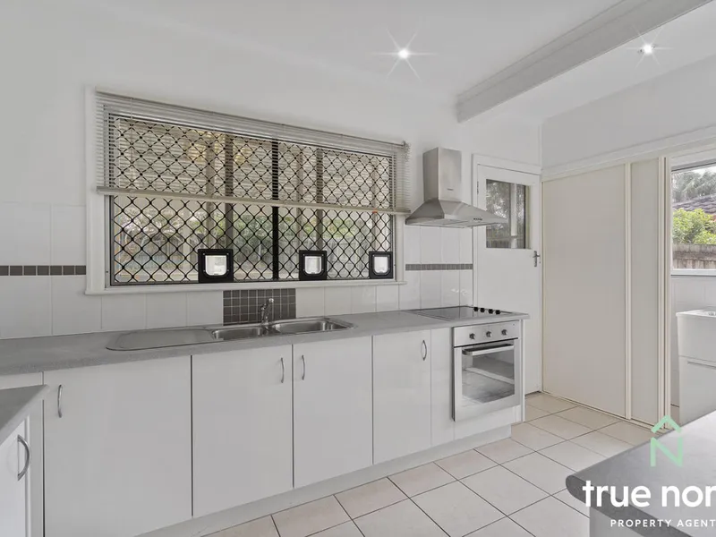 A cooks dream kitchen – large stone work bench, built in Microwave & self cleaning oven with induction cooktop plus dishwasher