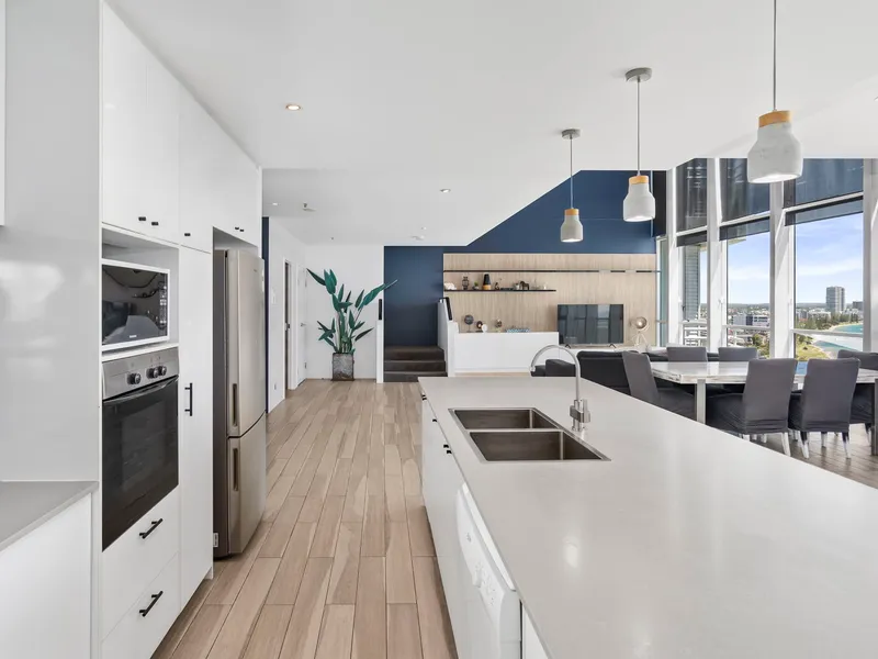 At the heart of the home is a spacious open-plan living and dining area, bathed in natural light and seamlessly connecting to the outdoor entertaining space. The modern kitchen is both stylish and functional, featuring stone benchtops, quality appliances, and ample storage - perfect for home cooks and entertainers alike.