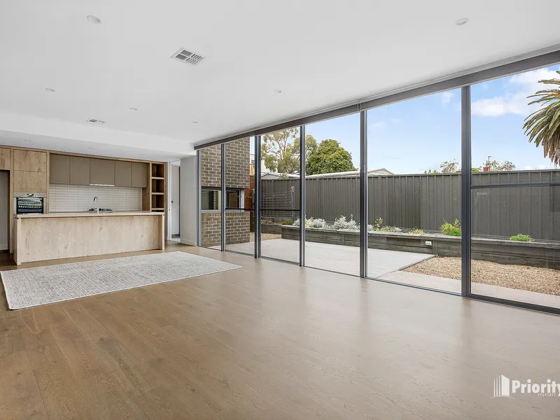 - Open plan light filled living area with large windows overlooking the garden