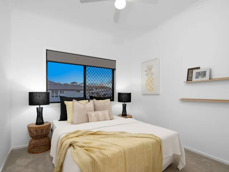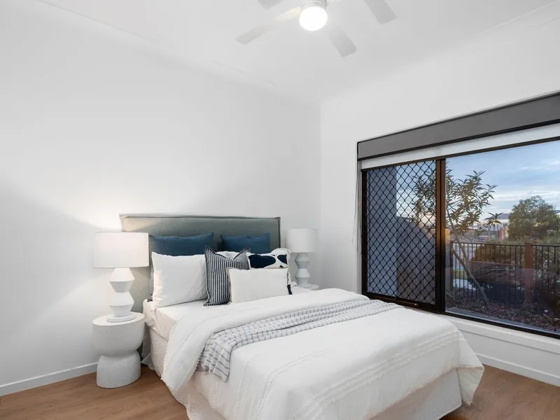 Entertain in style with three outdoor entertaining areas, including a beautiful balcony where you can sit and watch the world go by. The low-maintenance garden with Astro turf is perfect for gatherings, and the property is equipped with solar panels, tinted windows, security fly screens, and doors for your peace of mind.