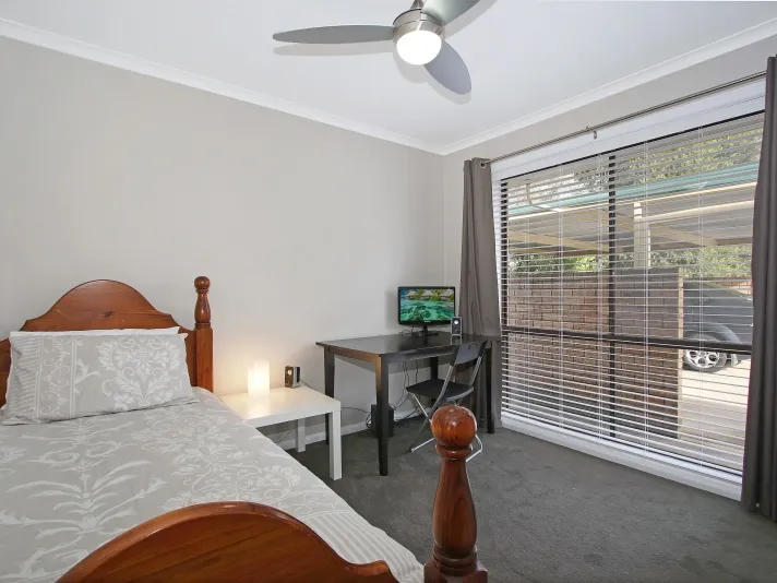 Comfort continues throughout the accommodation, with two well-sized bedrooms designed to provide both privacy and practicality. Each bedroom includes built-in robes for convenient storage and ceiling fans to maintain comfort during warmer months. These features ensure the rooms remain both functional and comfortable throughout the seasons.
