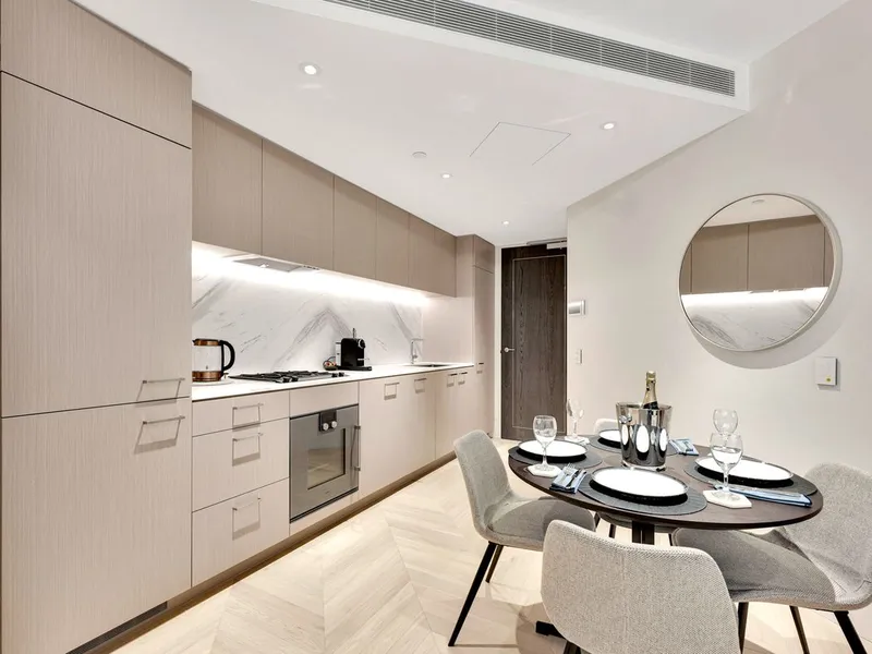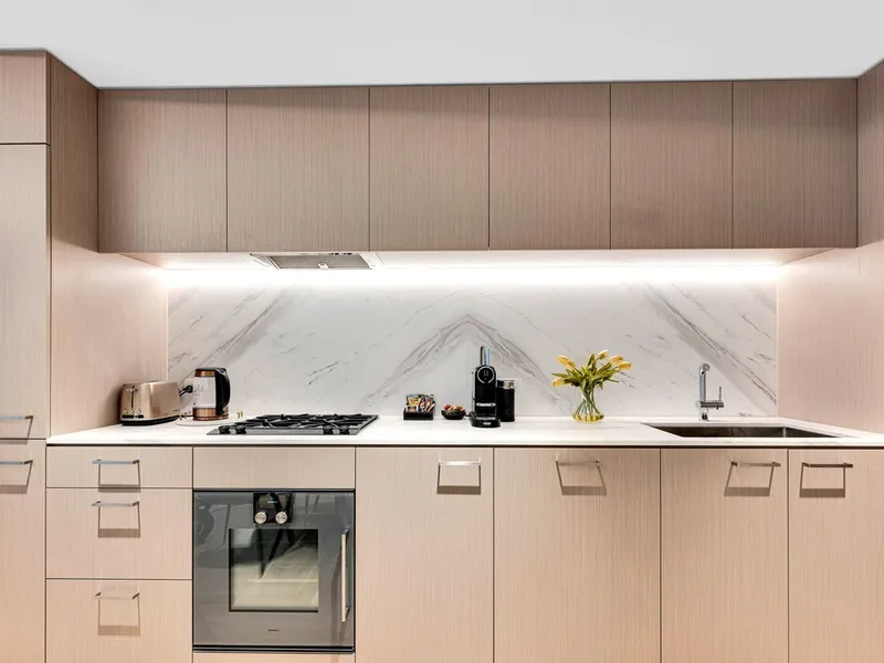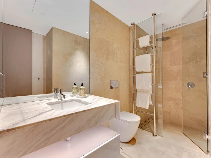 This one-bedroom, one-bathroom luxury apartment encapsulates everything that makes these Saint Moritz residences so desirable and so hard to get. Calacatta marble kitchen bench tops sit alongside Gaggenau appliances. Theres no expense spared, no consideration unthought of.