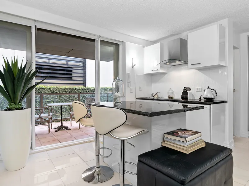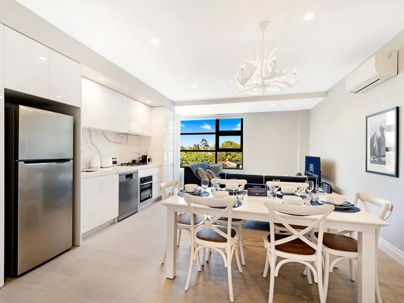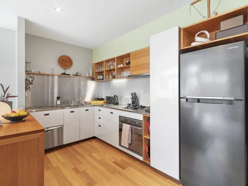 The open plan kitchen, living and dining spaces make the most of the abundance of natural light. The well-appointed stone benchtop kitchen with stainless steel 4 burner hob gas cooktops, oven, dishwasher and microwave allows you to engage with guests or family whilst entertaining. Wake up to a fresh coffee from your very own espresso pod coffee machine.