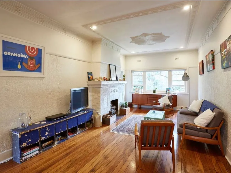 This stunning 2-bedroom plus study apartment, ideally located in the heart of St Kilda, exudes charm and elegance. Situated on the top floor of a grand Deco building, it is filled with period features that enhance its warmth and style. The apartment offers a spacious, light-filled living room, an entertainer's dining area, and a sleek kitchen with stainless steel and wood finishes. The main bedroom is generously sized, featuring built-in robes and access through glass doors to the adjoining study or sunroom. The second double bedroom also boasts ample built-in robes. The bathroom is generously proportioned with green mosaic tiles, a separate shower, and a bath. Additional highlights include timber floorboards, decorative high ceilings, and an ornamental fireplace. With public transport, restaurants, Albert Park, and the beach all at your doorstep, this apartment offers the perfect blend of comfort and convenience.