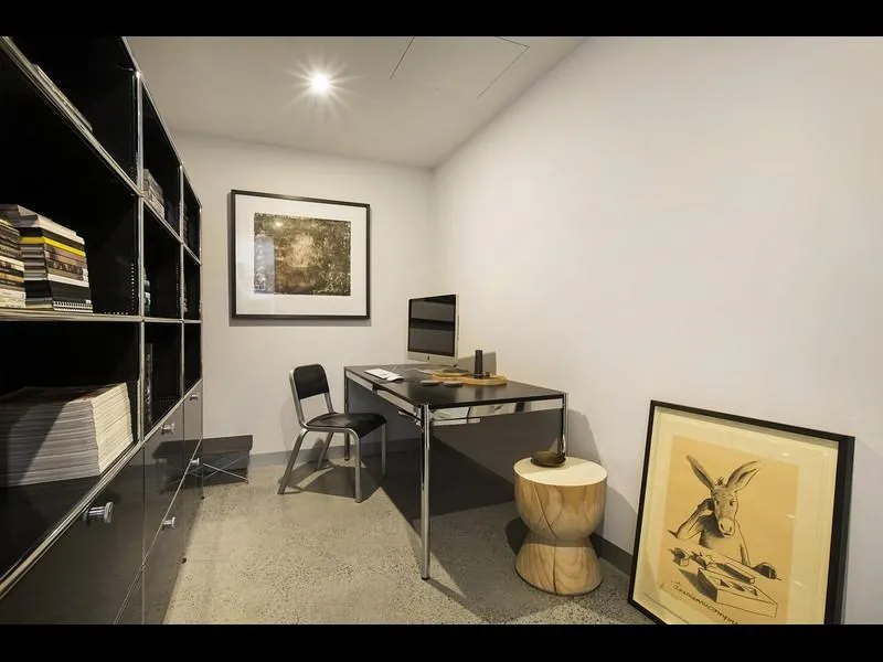 Featuring a spacious main bedroom plus study or second bedroom, this well-designed residence showcases polished concrete floors and a light-filled open-plan living and dining area that creates a seamless flow throughout. The sleek kitchen is equipped with stainless-steel gas appliances and a dishwasher, making everyday living effortless.