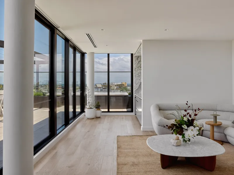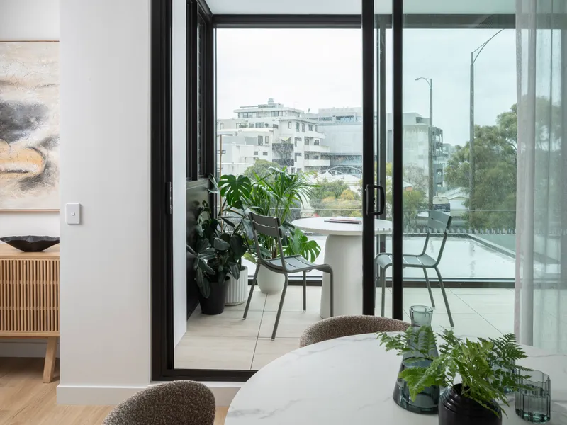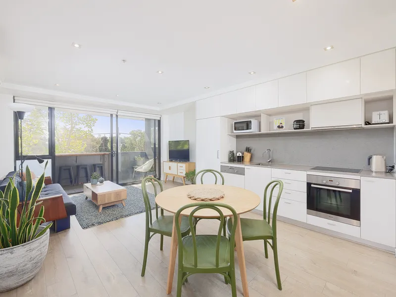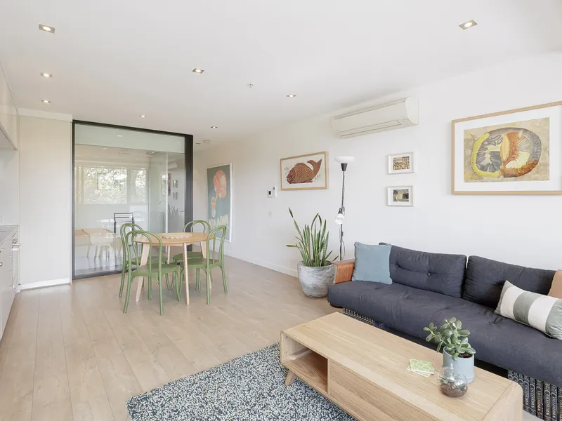- Light-filled open living and dining area opening to full width balcony
