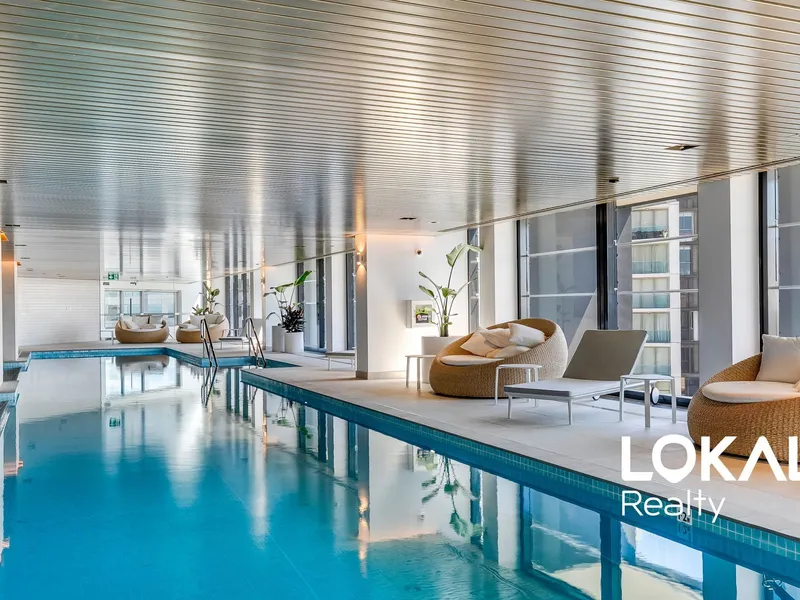 - Heated lap pool, spa, sauna, steam room, gym with Harbour views
