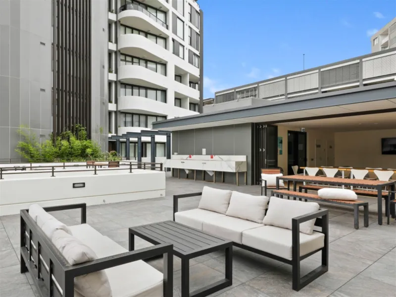 - Communal rooftop lounge with TV screen, dining, landscaped terrace with bbq areas