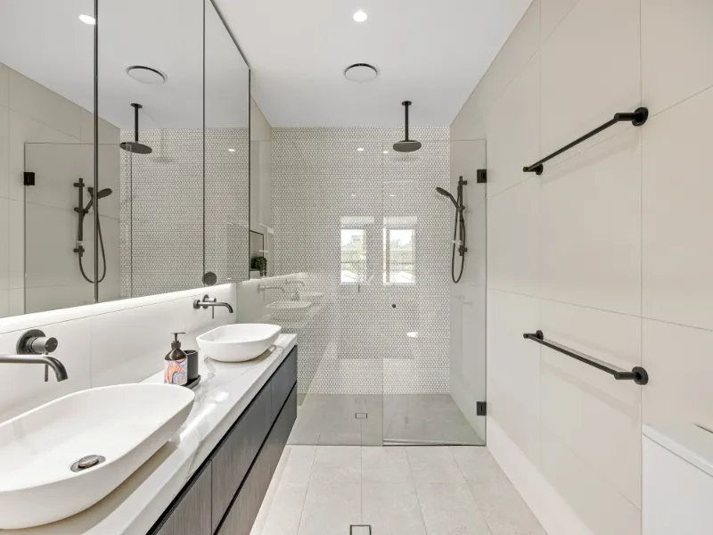 • Oversized main bathroom with double basin and LED lighting