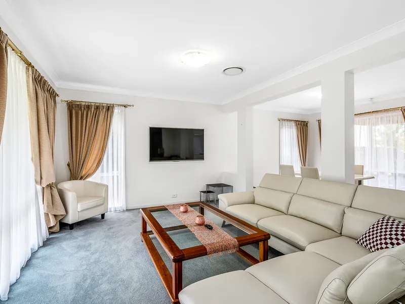Presenting a leafy outlook from all windows, this functional 5-bedroom home offers ducted air-conditioning and plenty of off-street parking via private rear access gates, leading to a large driveway and double garage, perfect for securely parking a work ute, boat, caravan, or trailer, with ample street parking in front.