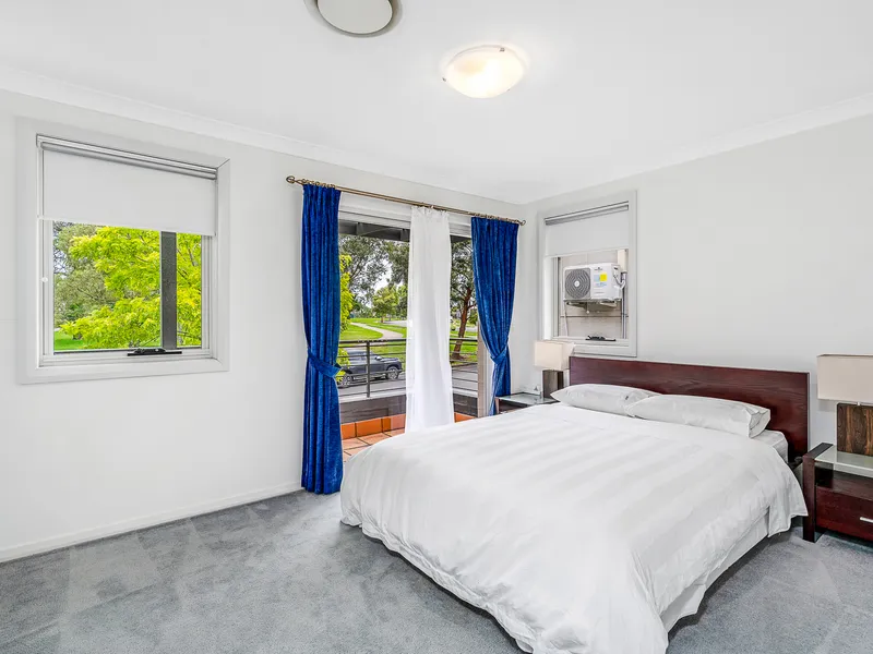 • All four bedrooms are fitted with built-in robes, with one offering access to the large front balcony. The main bedroom features an en-suite and his-and-hers robes. One bedroom is located on the ground floor, ideal for elderly parents or as a home office.
