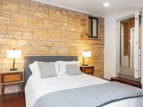 - Newly installed Jarrah floorboards alongside exposed stone and brick feature walls