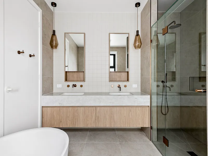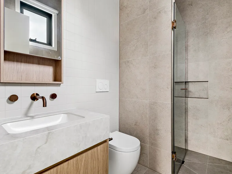 4 carpeted bedrooms, a master bedroom with ensuite and walk in robe downstairs & another master bedroom upstairs of equal size with WIR and full ensuite.