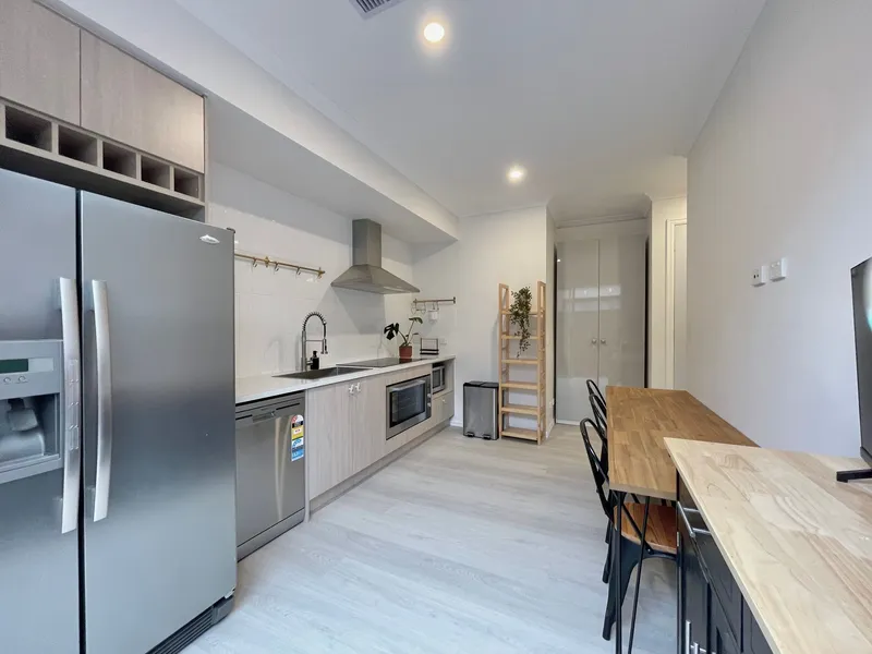 The all-electric fully furnished property features two bright and comfortable bedrooms with walk-in robe and built-in full mirrored robe, providing a relaxed and private space to unwind. A functional kitchen with upgraded appliances allows for easy everyday cooking, while the extra large private bathroom features an elegant shower and vanity.