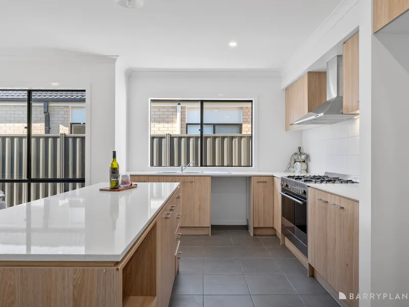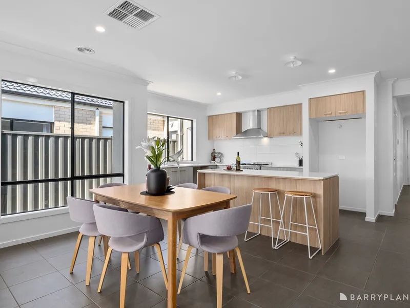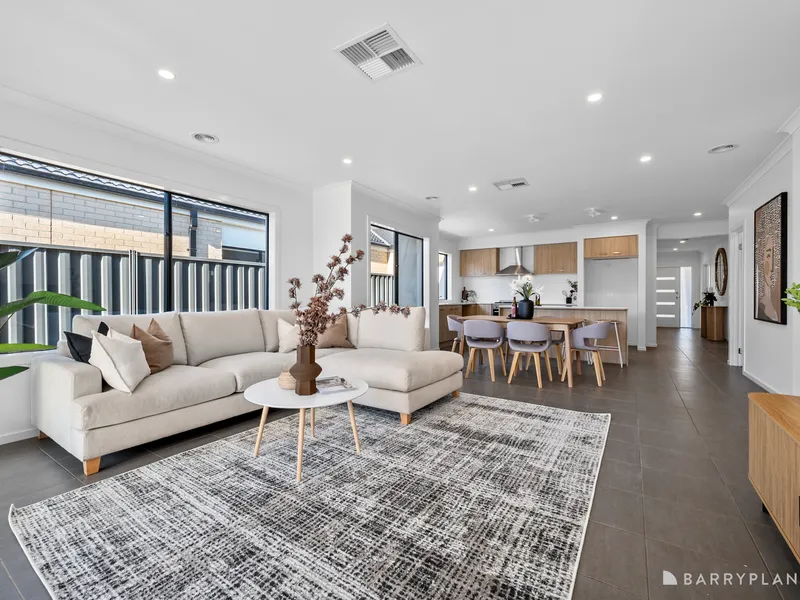 A stunning home built by Carlisle Homes, offering a perfect blend of luxury and functionality. This exquisite property features 4 spacious bedrooms, including a master suite with an ensuite with double vanity and walk-in robe, providing a private retreat for relaxation. The remaining three bedrooms are well-appointed with built-in robes, serviced by a modern central bathroom. Boasting 2 generous living areas, this home offers ample space for family gatherings and entertainment. The open plan kitchen is a chef's delight, equipped with premium 900mm stainless steel appliances, a walk-in pantry, stone benchtops and sleek cabinetry, ensuring a seamless cooking experience. Step outside to an undercover alfresco area to cater for all year-round entertainment needs and leading to a big backyard with plenty of space for the kids to run around. The property is fully landscaped, providing a picturesque setting and low-maintenance living. The double car garage ensures ample parking and storage space. This home is ready for you to move in and enjoy immediately, with every detail meticulously designed for comfort and convenience. Other features also include ducted heating and evaporative cooling. Located close to all local amenities, schools, Cobblebank train station, new public hospital and parks this beautiful home is the perfect place to create lasting memories with family and friends. With its blend of modern luxury, thoughtful design, and practical features, this home is a must-see!
