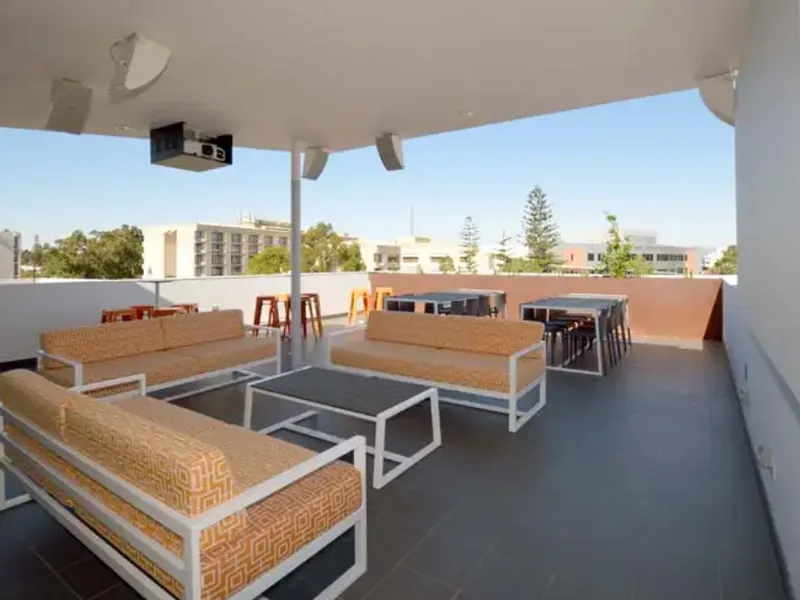 Residents enjoy access to fantastic shared facilities including a rooftop entertaining area with BBQs, outdoor cinema, gym, sauna and resident lounge.