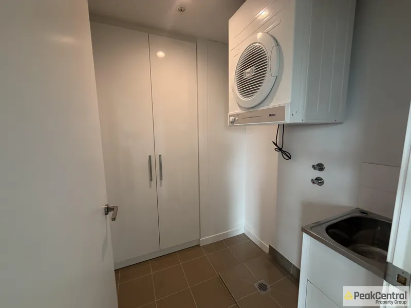 Step into this bright and inviting apartment, complete with lift access and a spacious open-plan layout designed for modern living. The sleek white gloss kitchen offers generous storage, a 4-burner gas cooktop, oven, double sink, dishwasher, and dedicated microwave and fridge recesses-perfect for everyday convenience.