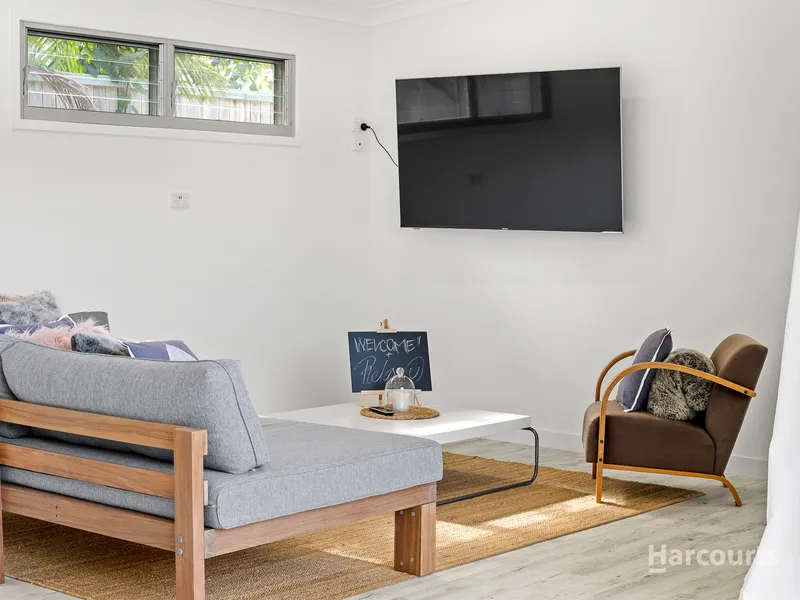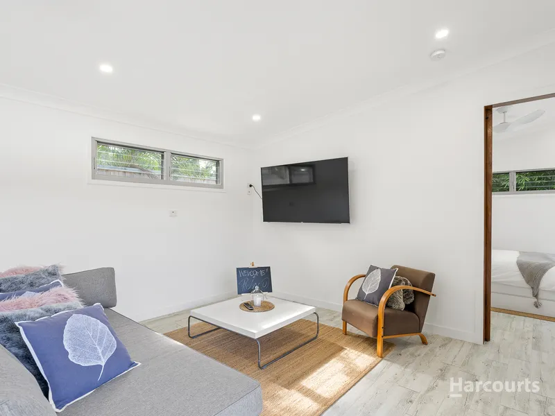 Flooded in natural light the living areas flow to your own large external timber deck via bi-fold doors that opens the entire living space.
