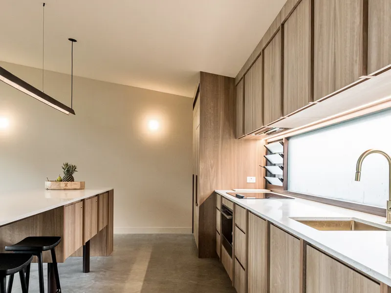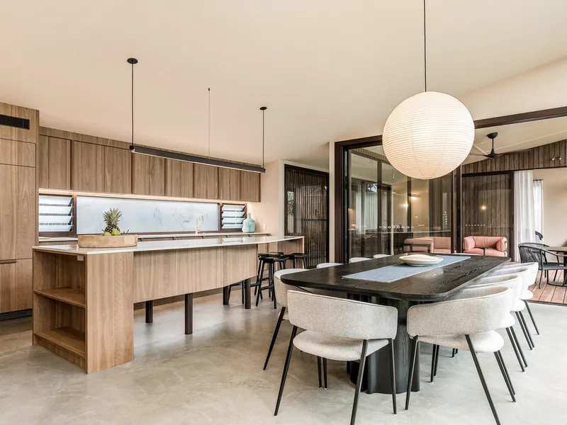 Seamless flow to outdoor deck for BBQ and alfresco dining.