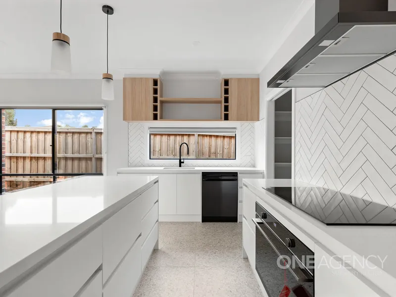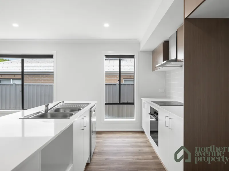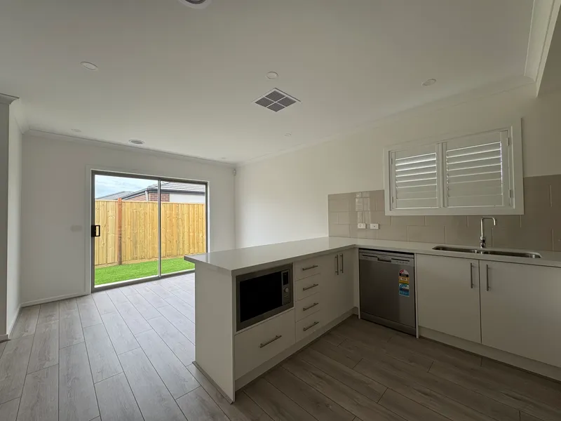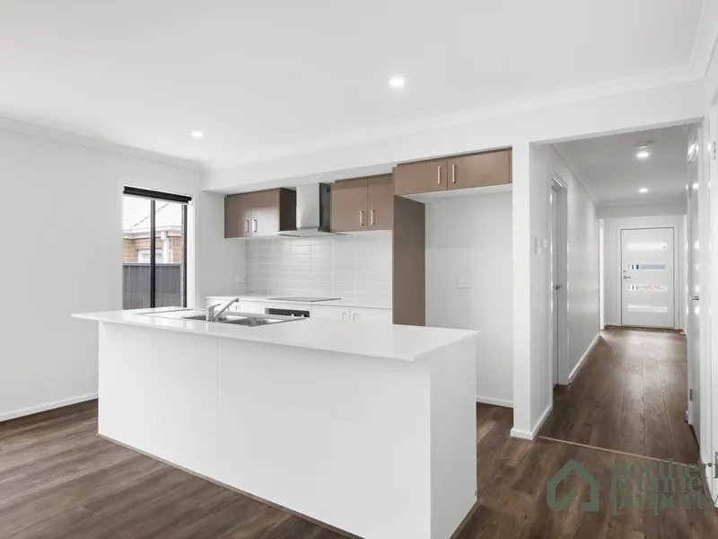 This near new three-bedroom, two-bathroom home offers the perfect combination of comfort, style, and convenience. Designed for modern living, the open-plan layout provides a seamless flow between the living, dining, and kitchen areas, making it ideal for families or professionals alike.