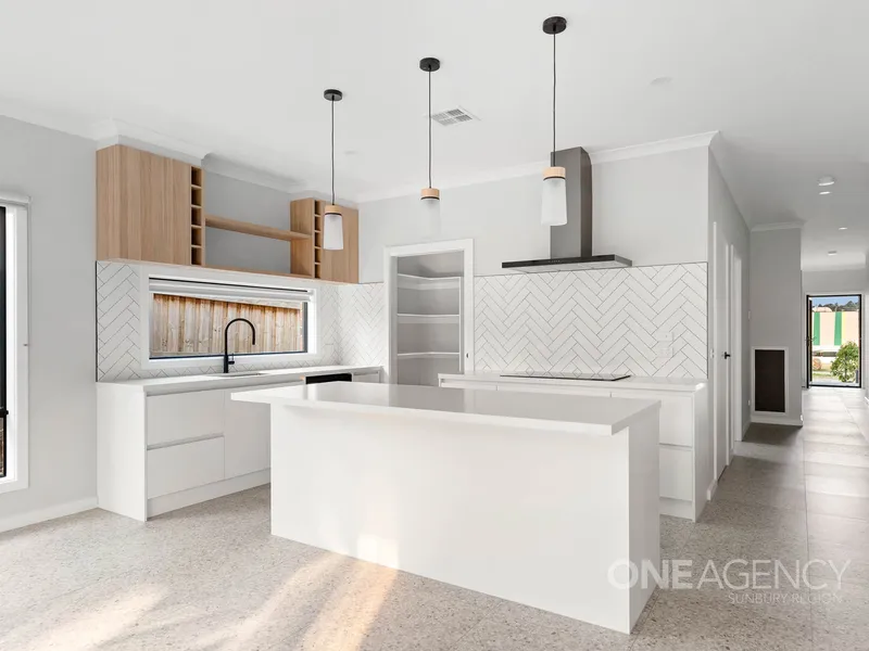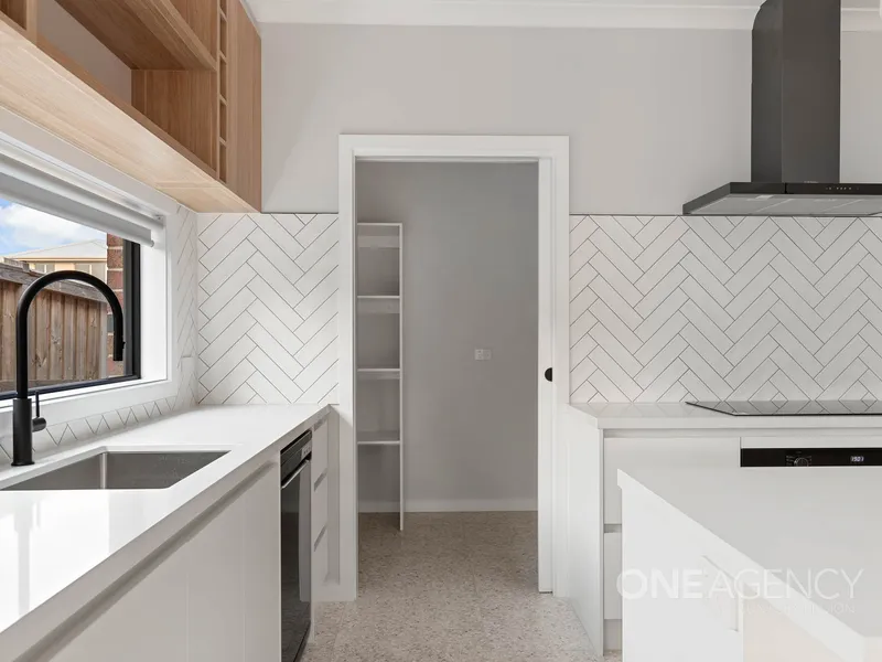 The kitchen is well-appointed with stainless steel appliances, ample bench space, and a walk-in pantry, ensuring plenty of storage for all your cooking essentials. The master bedroom features an ensuite and walk-in robe, while the two additional bedrooms include built-in wardrobes and are serviced by a stylish central bathroom with a separate bath and shower.