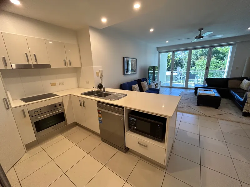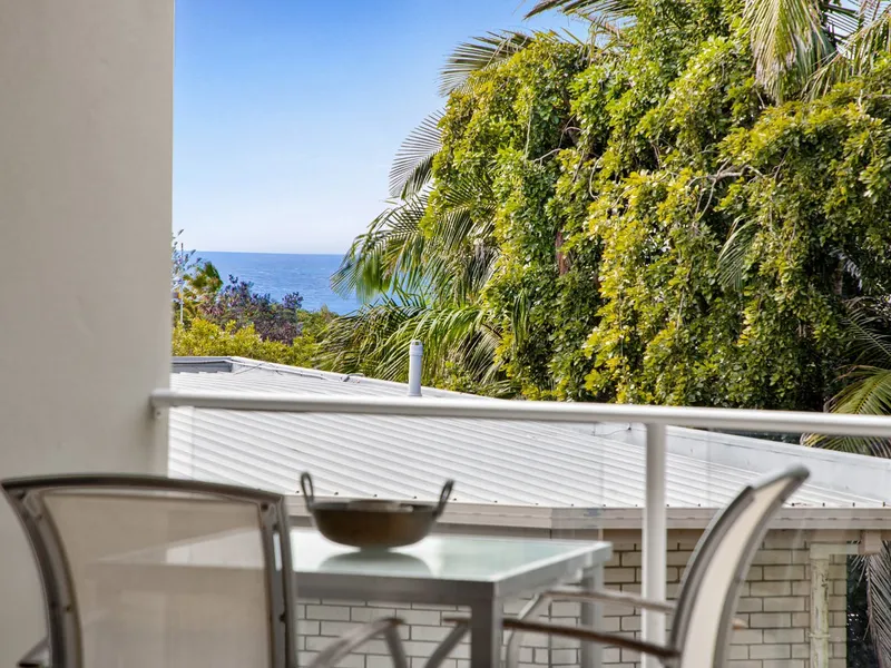 Good sized 'privacy assured' apartment with glimpes to the ocean from front balcony and a lovely outlook over inground pool and street bushlands.