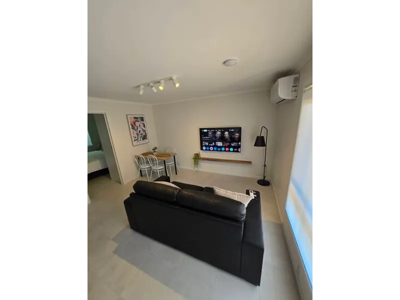 - Open plan living and dining area with air-conditioning