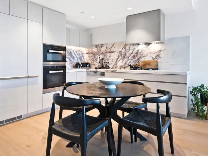 - Gourmet kitchen gleams with solid 18mm New York Marble benches, Miele appliances and integrated fridge and dishwasher