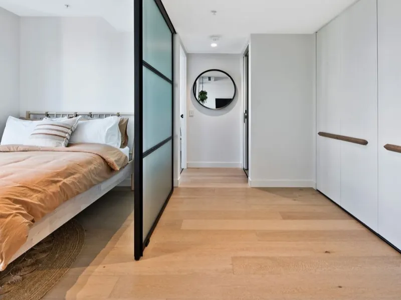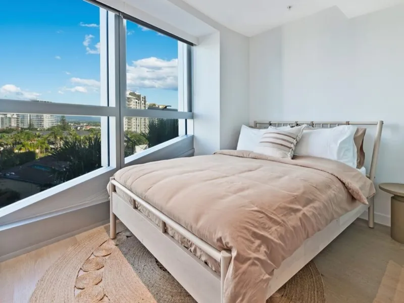 Steeped in sophistication and sunshine, an open plan kitchen, living and dining zone is enhanced by washed driftwood grain floors and gleaming New York Marble finishes. Step seamlessly onto the protected alfresco terrace from here to entertain against mesmerising ocean vistas, with the bedroom also benefitting from this outlook. Complete with a walk-in robe, and elegant ensuite boasting a Gun Smoke Onyx vanity and a freestanding bath, it emulates graceful grandeur.