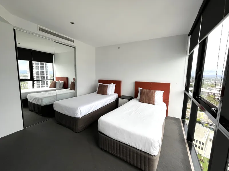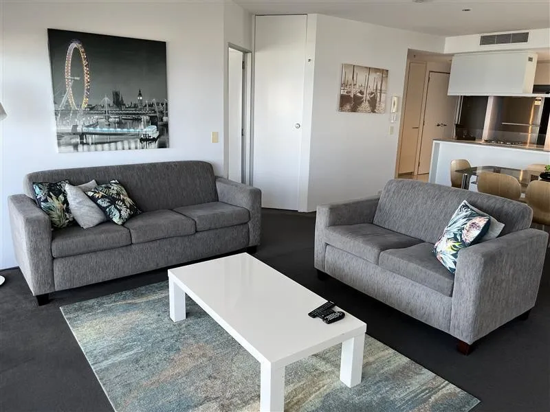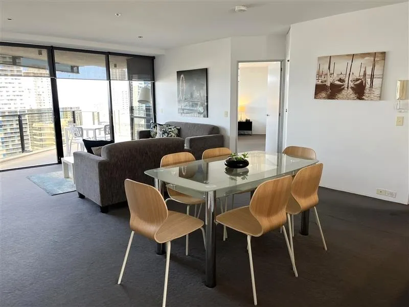 Experience elevated living in this beautifully furnished two bedroom plus study apartment on Level 18 of the South Tower. Boasting breathtaking views of the ocean, skyline, river, and hinterland, this apartment is perfectly positioned above Surfers Paradise’s trendiest cafes and shops.
