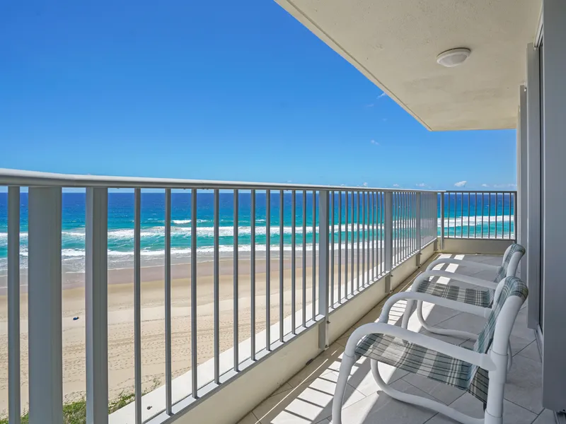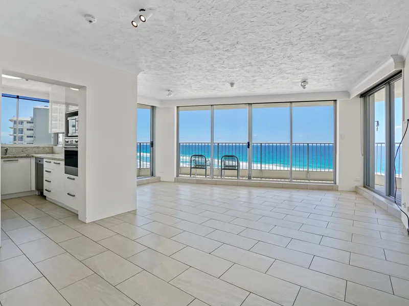 Positioned on the 13th floor of Surfers Plaza, this spacious 72sqm apartment captures spectacular canal and district views, with stunning sunrises and sunsets enjoyed through floor-to-ceiling glass windows.