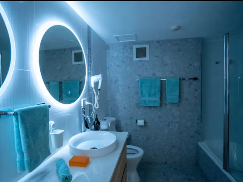 Newly renovated spa/sauna room on Level 3 with city views