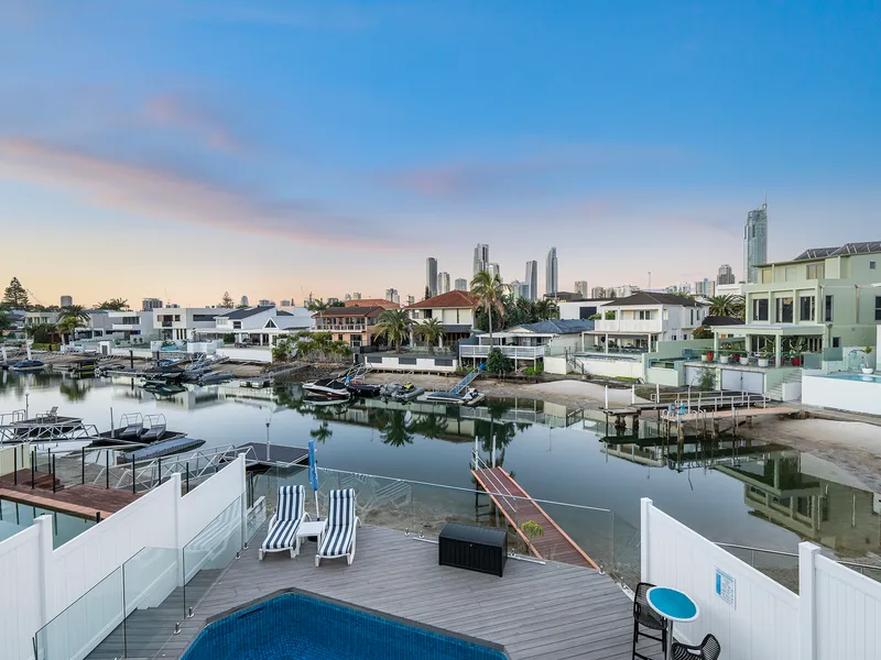 From its high vantage, this skyhome offers awe-inspiring 270° views of the Gold Coast. Wake up to golden sunrises over the Pacific, watching waves roll onto the shore from your balcony. By day, vistas span from the pristine coastline and Pacific Ocean to the winding Nerang River and lush hinterland. Come night, the twinkling city skyline provides a dazzling backdrop for both entertaining and quiet relaxation.