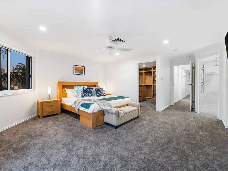 High-End Finishes: Gourmet kitchen (stone benchtops, premium appliances), rich timber flooring, bespoke cabinetry; designer furnishings included.