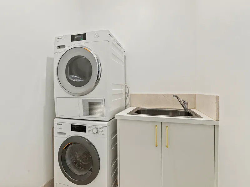 Separate laundry with Miele appliances.
