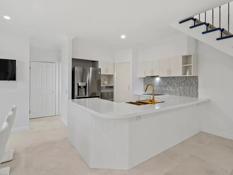 Gourmet kitchen with plenty of cupboards, Vintec wine fridge, double door refrigerator.