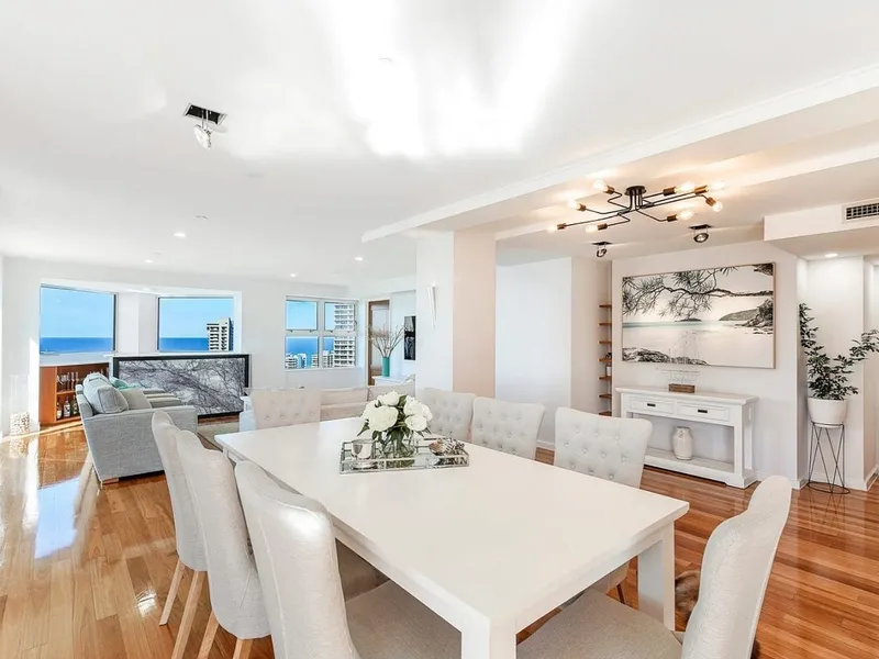 Welcome to Apartment 124 in the prestigious Grand Mariner - a rare find this spacious, unfurnished 3-bedroom apartment offers luxurious resort-style living in the exclusive Paradise Waters precinct. Perfectly positioned on the 21st floor, this residence boasts breathtaking 300 degree views of the Broadwater, Ocean, and city skyline from a huge outdoor terrace- and comes complete with a floating dock for a Jet ski. With over 315m2 of living and outdoor space this is a great apartment for those that love to entertain.