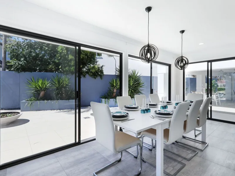 Positioned slightly set back from the water's edge, the home enjoys added tranquillity and security, making it especially suitable for families or those seeking a peaceful lifestyle setting rather than a high-traffic boating environment. The pool, media room and multiple living zones provide flexibility for growing families.
