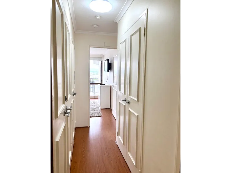 The master suite offers a comfortable retreat with walk-in robes, a well-appointed ensuite and access to a private terrace overlooking the water and skyline. Additional bedrooms are generously sized, with practical bathroom arrangements to suit family living.