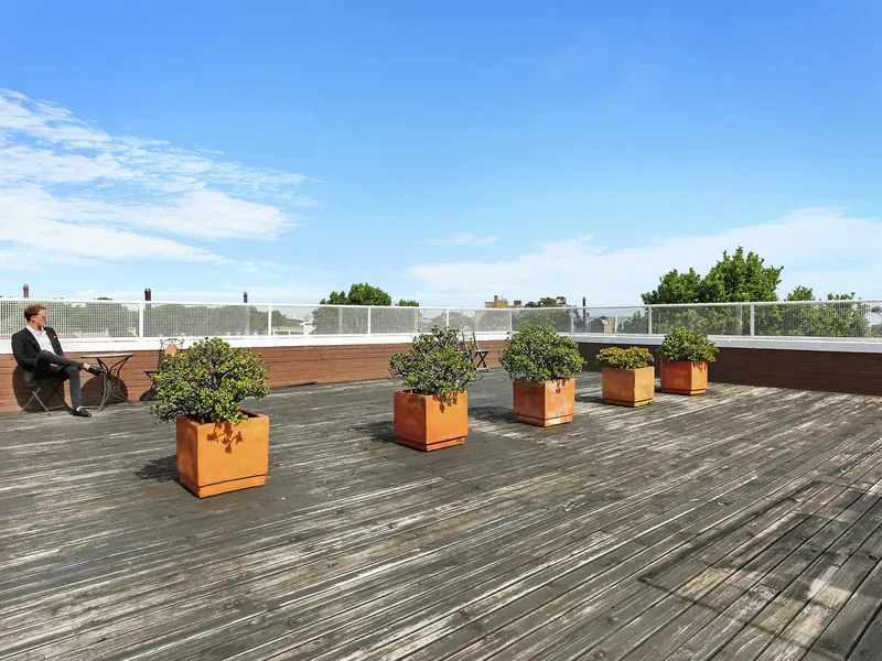 - Common rooftop terrace with sweeping district and city views