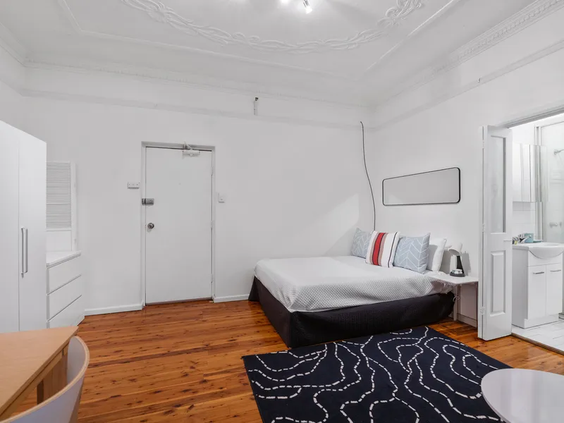Set within a boutique security building, this classic Art Deco apartment is graced with ornate high ceilings, hardwood floors, and enjoys a prime position in a lifestyle rich location.