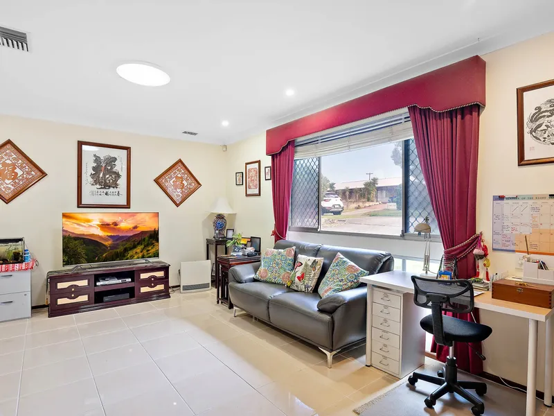 Outside, you’ll find a large fully fenced backyard, complete with a gazebo and garden sheds, providing plenty of room for outdoor living, storage, and family enjoyment.