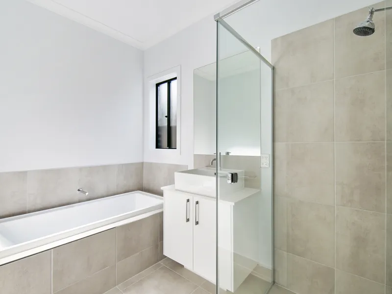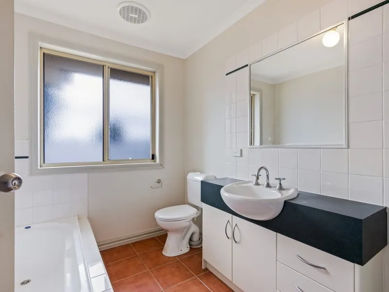 Additional features include ducted heating and cooling, a central bathroom with separate shower and bathtub, separate toilet, internal laundry, secure single-car garage with internal access.