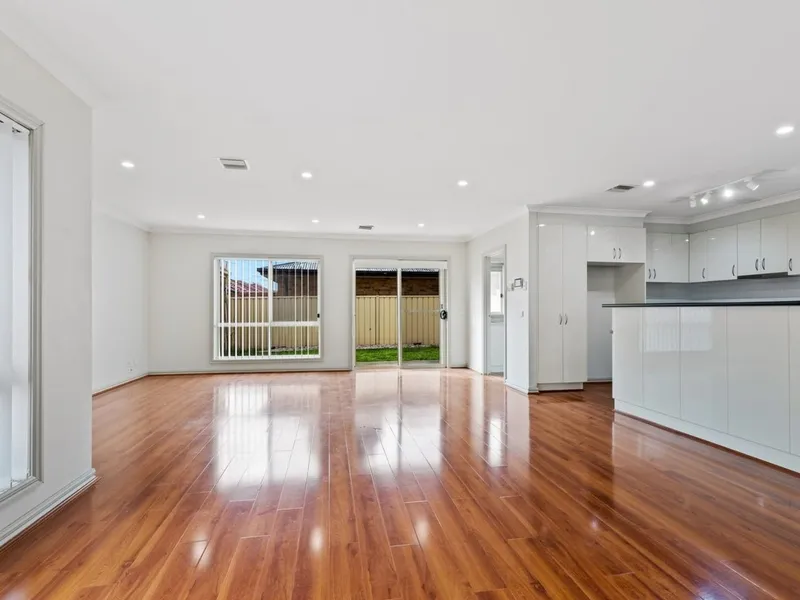 Featuring three generous bedrooms, all with roller blinds, plus a dedicated study ideal for working from home. The master bedroom includes a walk-in robe and private ensuite for added comfort and convenience.