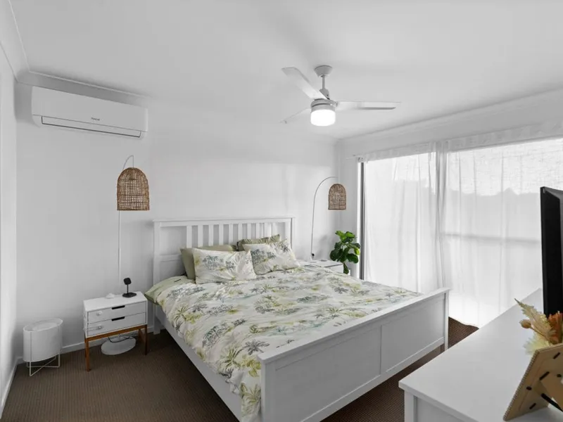 4 generous sized built in bedrooms, all with ceiling fans, Master bedroom has en-suite plus split air con with a walk in room.