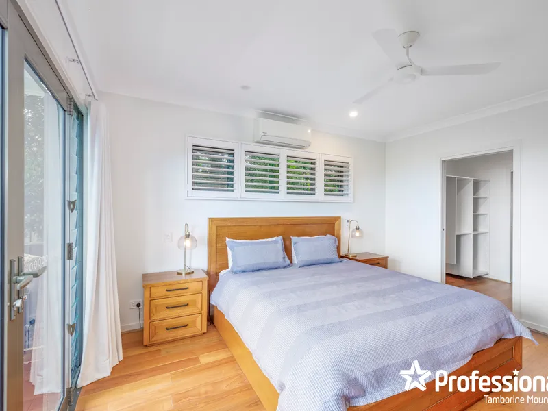 This centrally located, spacious and serene large home boasts a panoramic view of the Gold Coast hinterland and coastline stretching from northern NSW to South Stradbroke Island.