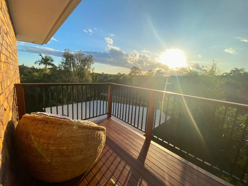 Upstairs showcases polished timber floors and a warm, elevated feel, with the main living area opening out to a generous deck capturing leafy outlooks and views. The deck is complete with a spa, creating a relaxed space to unwind or entertain. The kitchen is well-positioned to take in the outlook and is equipped with a dishwasher and 6-burner gas stove, flowing through to multiple living and lounge areas. Bedrooms are well-sized with built-in storage, while the master suite offers a spacious ensuite and additional room for a study or dressing area. A large wrap-around verandah further enhances the home's liveability, providing multiple spaces to enjoy the outdoors.